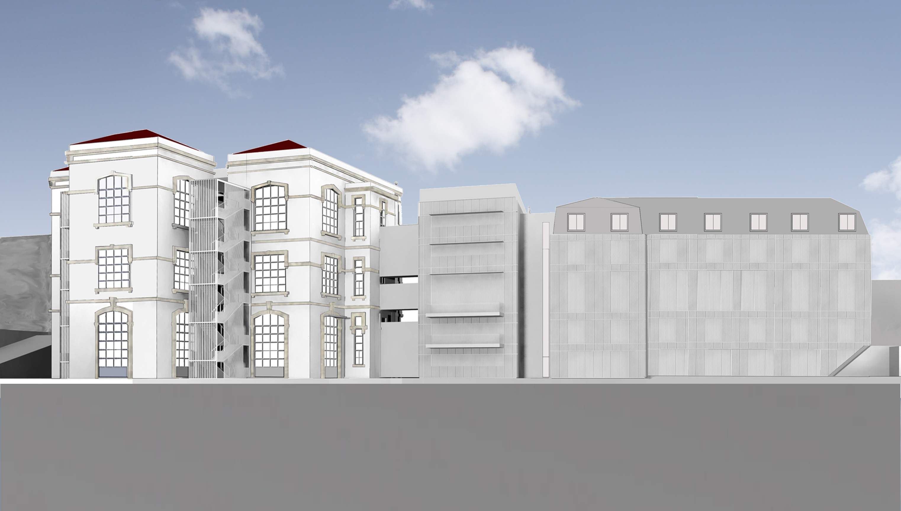 Der Entwurf verbindet die erwünschte Revitalisierung des Viertels (fast durchgängig Bebauung aus dem 18. Jhd)