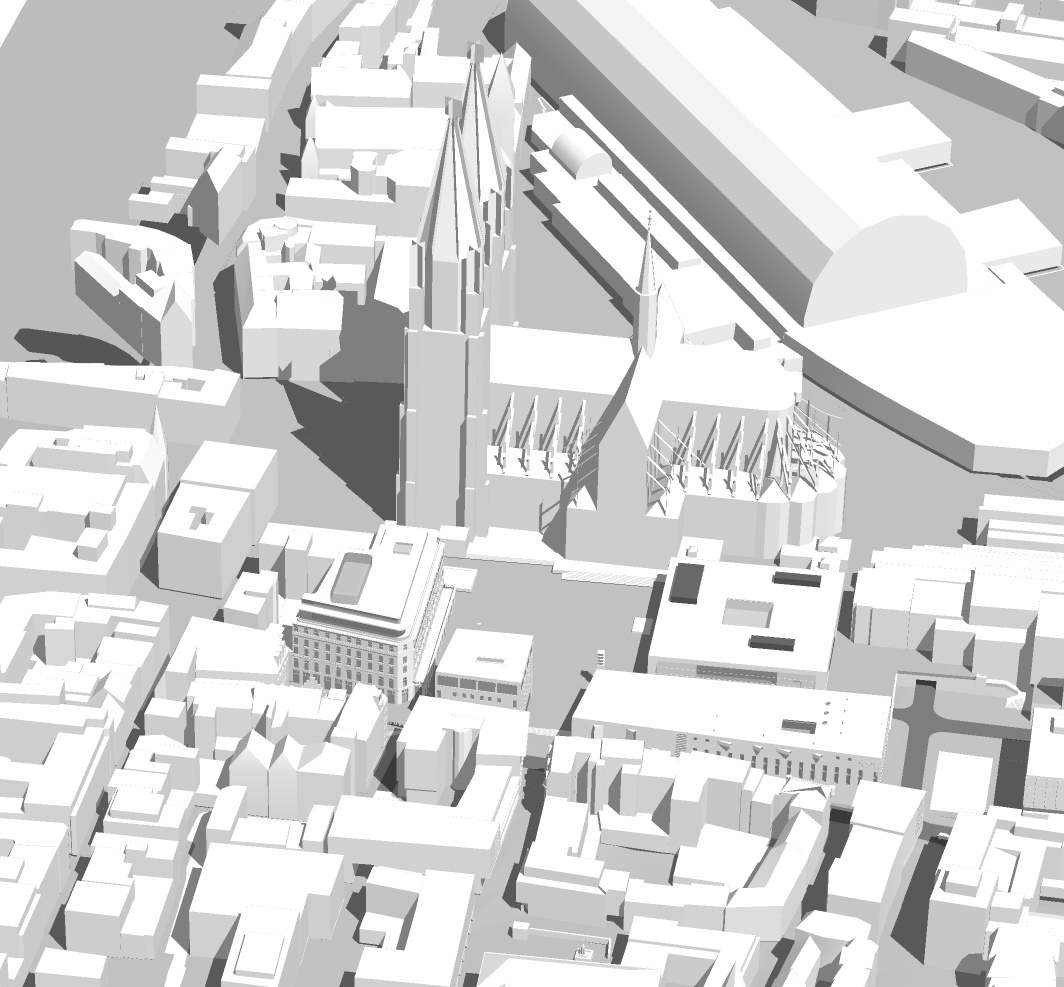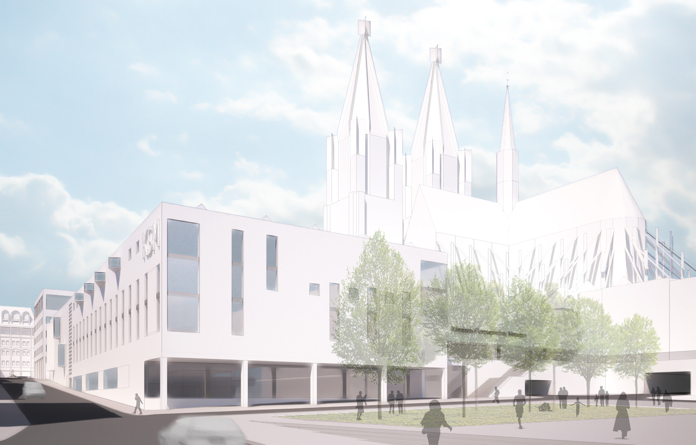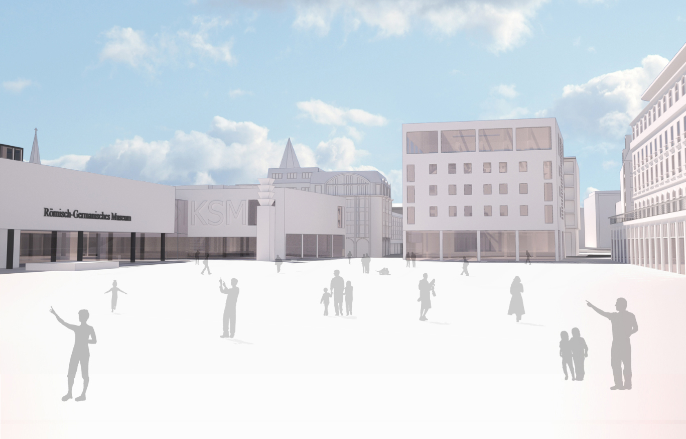 Der Einstieg in die Via Culturalis wird vorgezogen auf den Roncalliplatz und nimmt ihren Ausgang von diesem Platz zu Füßen des Doms. Die Straße Unterer Goldschmied versandet nicht mehr am Hof. Das Entreé zum Platz flankieren das neue Doppelmuseum KSM/ RGM und das Kuriengebäude. Die Kurie steht dort wo einmal die Hacht stand. Das Hachttor markierte die historische Grenze zwischen kirchlicher und städtischer Gerichtsbarkeit. Vergangenheit wird wieder ablesbar.